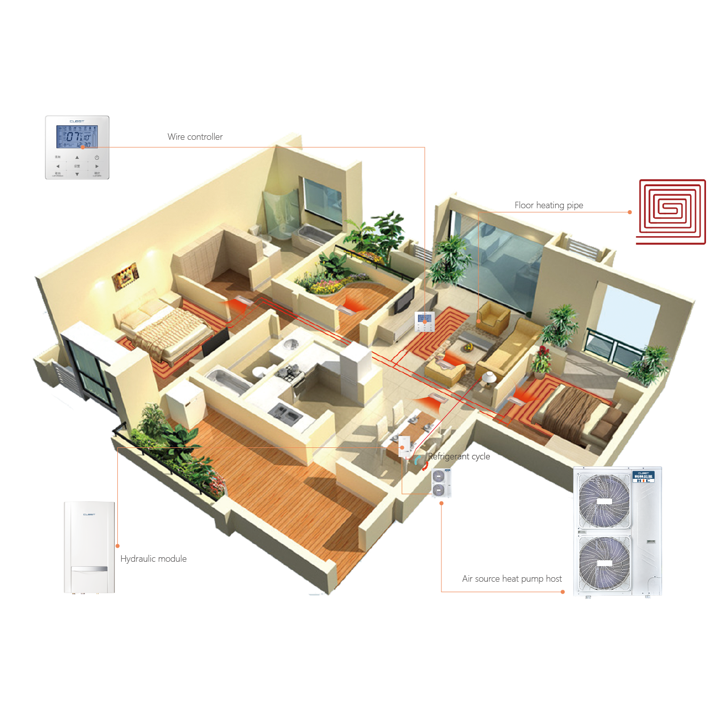 CLBST air source heat pump, a clean and renewable method of energy heating, integrates central air conditioning and heating functions.