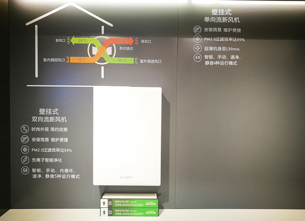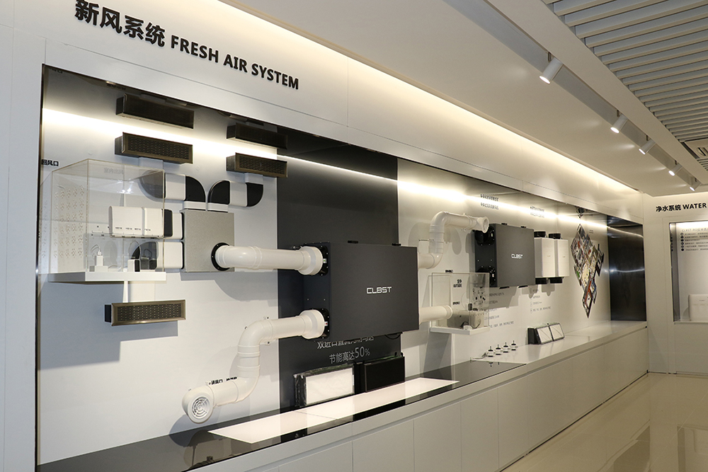 新風(fēng)系統(tǒng)展示區(qū)展示了科林貝思全屋新風(fēng)系統(tǒng)解決方案及新風(fēng)系列產(chǎn)品:柜式新風(fēng)機(jī)、中央式單(雙)向流新風(fēng)機(jī)和壁掛式單(雙)向流新風(fēng)機(jī)??屏重愃夹嘛L(fēng)系統(tǒng)以創(chuàng)造健康智能居家生活為理念,根據(jù)住宅的實(shí)際需求,提供恒凈恒氧的新風(fēng)解決方案,改善室內(nèi)空氣品質(zhì),保障健康呼吸,實(shí)現(xiàn)舒適健康智能居家生活。