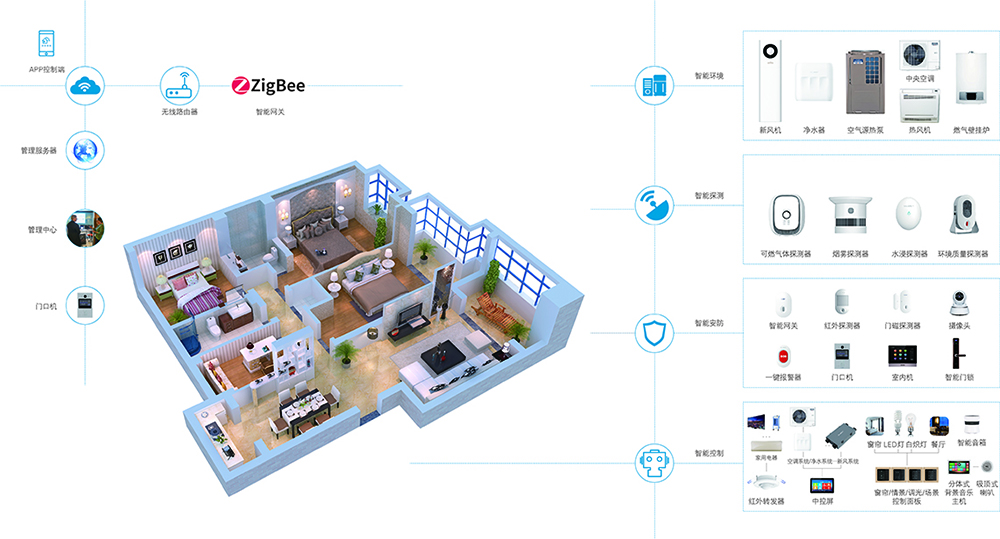 智能網(wǎng)關(guān)、智能攝像頭、環(huán)境質(zhì)量探測(cè)器、煙霧探測(cè)器、可燃?xì)怏w探測(cè)器、水浸探測(cè)器等科林貝思智能家居產(chǎn)品全面覆蓋集成智能玄關(guān)、智能客廳、智能臥室、智能廚房,為您帶來(lái)全新的人工智能生活體驗(yàn)。
